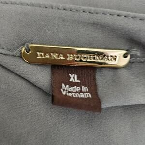 This charcoal gray blouse from Dana Buchman features a split neckline with vertical pleating down the front for soft structure. Ideal for pairing with trousers or skirts for elevated workwear or casual polish.