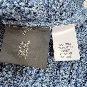 NWT Dana Buchman Pointelle Tape Yarn pullover sweater. Color blue crush. Side slits at hem. V-neck. Measures flat 29" underarm seam to seam. 20" from shoulder to cuff. 25" length from shoulder. Medium