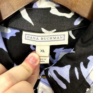 Dana Buchman Popover top Womens XL Black 3D Rose Sheer Mesh Long Sleeve Boho Art