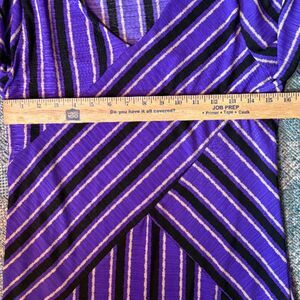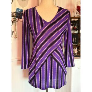Dana Buchman Purple, Black, White Striped V-Neck Top Size Small