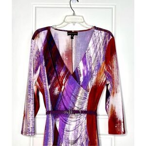 Dana Buchman Purple Surplice Ruched Belted Abstract Dress Sz XLARGE