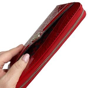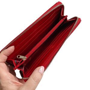 Dana Buchman Red Zip Around Wallet/Clutch Patent Leather Logo Embossed