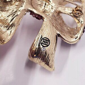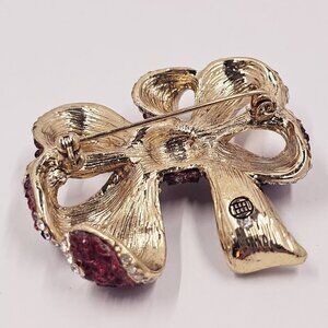 Dana Buchman Ruby Red Pave Rhinestone Pin Gold Tone Bow Fashion Costume Jewelry