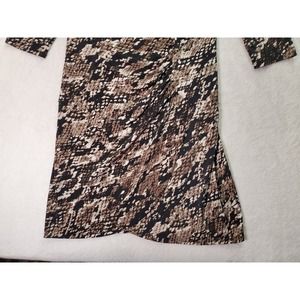 Dana Buchman Sheath Dress Womens Medium Black Brown Snakeskin Print Round Neck.