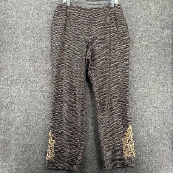 Dana Buchman Silk Dress Pants Women 14 Black Print High Rise Straight Artsy
