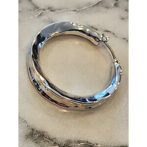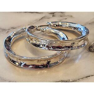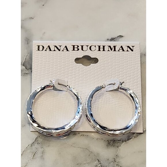 These Dana Buchman silver-tone hammered hoop earrings offer a polished and versatile design for daily wear or professional settings, complementing any attire.