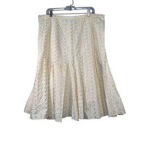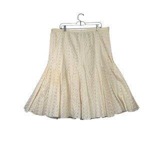 Dana Buchman Size 16 Cream Eyelet Embroidered Multi Panel A-Line Skirt
