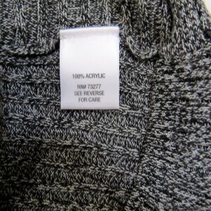 This charcoal gray/white mock turtleneck is lightweight and soft. 100% acrylic, machine wash/dry. Approx measurements laid flat: length 25" chest (pit to pit) 17". Perfect for office and can be dressed up or down. Excellent condition with no noticeable signs of wear.