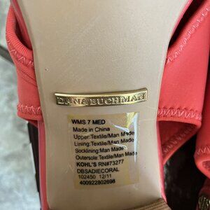 Very good condition, Fabric with some stretch for comfort with wood tone heel