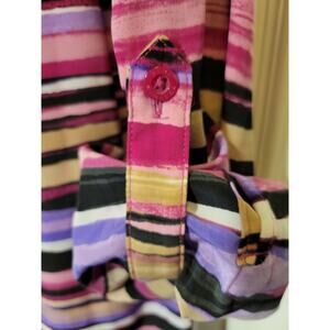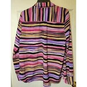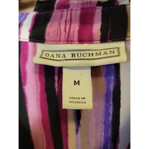Dana Buchman Striped Blouse Hidden Buttons Roll-up button-tab sleeves Women Sz M