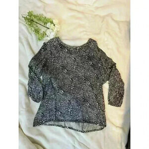 Dana Buchman Sweater Womens XL Black Tan Animal Print 3/4 Sleeve Rear Zip Casual