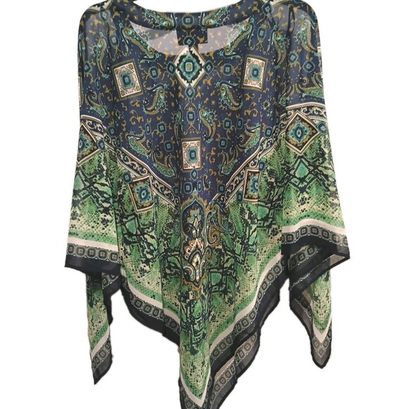 Dana Buchman Sz Large Overlay Kaftan Poncho Style Green Print