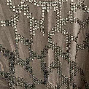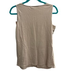This sophisticated tank top by Dana Buchman showcases a tan color with dazzling sequin embellishments that form an eye-catching pattern. The sleeveless design and elegant style make it an ideal choice for dressy occasions, adding a touch of sparkle to your ensemble.