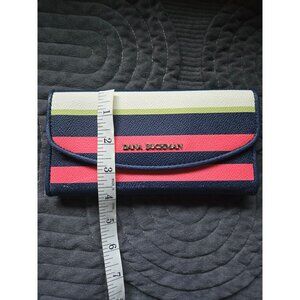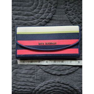 Dana Buchman Tri-Fold Striped Wallet Navy Coral Lime Gold Pre-Loved