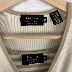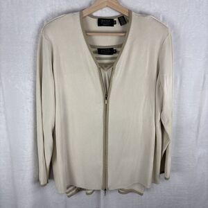 Dana Buchman Two Tone Cream Brown Zip Sweater & Tank Blouse Size 2X