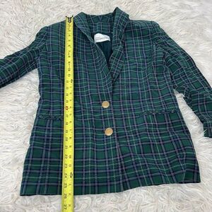 Dana Buchman Vintage 90s Silk Green & Blue Plaid Academia Blazer Petite Size 6