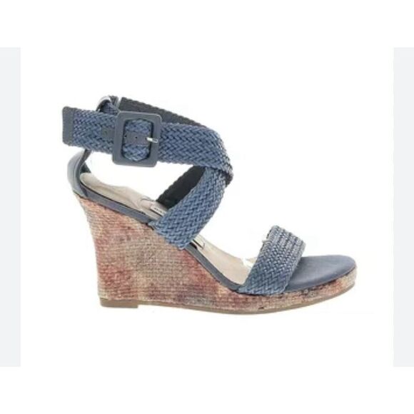 Dana Buchman Vintage Summer Woven Criss Cross Buckle Platform Wedge Sandals Blue Purple Size 10