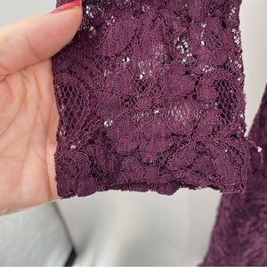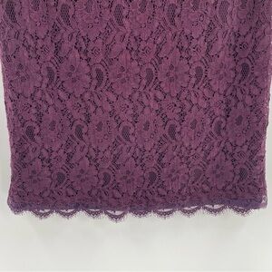 Dana Buchman Wine Colored Lace Lined Long Sleeve Mini Zip Back Scoop Neck Dress
