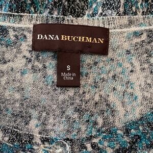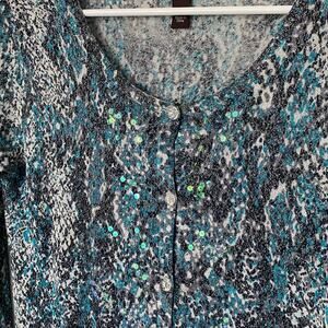 Dana Buchman Wm LS Button Front Blue Gray Animal Print Cardigan Sequins Size S