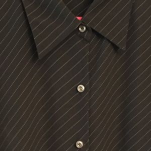 Black and white pin strip, light weight jacket. Jacket buttons down the front and can be worn buttoned up or over a shell/camisole.