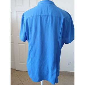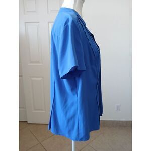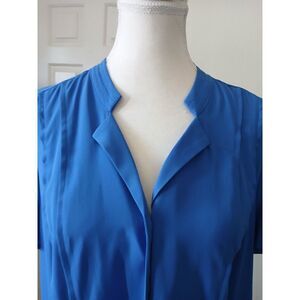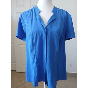 Dana Buchman Womens Blue Button Up Collared Short Sleeve Blouse Size Large