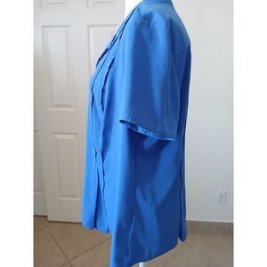 Elevate your wardrobe with this beautiful Dana Buchman blouse. The collared neckline and button closure provide a classic and sophisticated look, while the short sleeves and semi-sheer material make it perfect for summer, fall, and spring. The pleated accents and asymmetrical sleeve type add a touch of elegance to the blouse, making it suitable for travel, casual outings, and business meetings. This blouse is available in size L and is machine washable for easy maintenance. Add this versatile piece to your collection today!