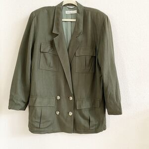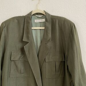 Dana Buchman Womens Double Breasted Linen Rayon Blazer Jacket Green Size 12
