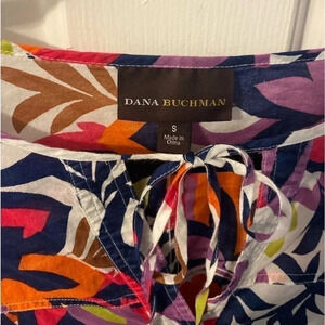 Dana Buchman Women's Floral Cotton Button down Tunic Roll Tab Sleeves Size S