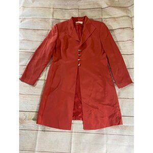 Dana Buchman Women's Orange Silk Sea Shell Button Front Long Coat - 14