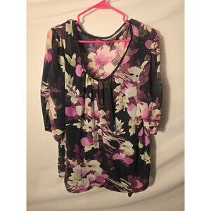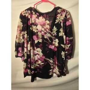 Dana Buchman Womens Plus Size 3X Purple Floral Blouse Top Shirt Short Sleeve