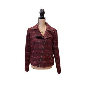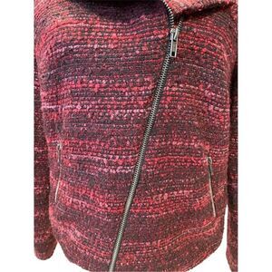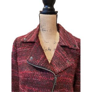 Dana Buchman Women's Red Tweed Jacket Size 12 Asymmetrical Zip