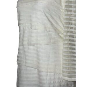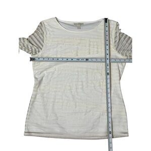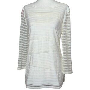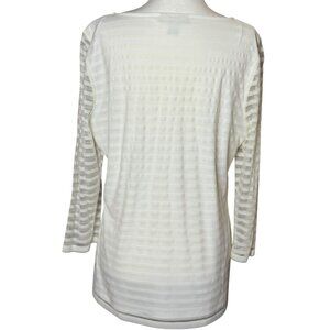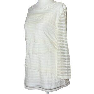 Dana Buchman Womens Size Large Blouse White Ruffle Striped Mesh 3/4 Sleeve Top