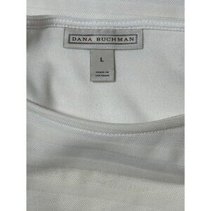 This Dana Buchman top offers an elegant touch to any wardrobe with its chic striped mesh design. The 3/4 sleeves provide a comfortable fit, ideal for layering or wearing alone. Crafted from lightweight materials, this top ensures breathability and ease of movement. Its versatile white color makes it suitable for a variety of occasions, while the large size offers a relaxed yet flattering fit.
