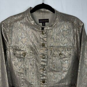 Dana Buchman Womens Snakeskin Print Metallic Jacket Size 16 Cotton Blend