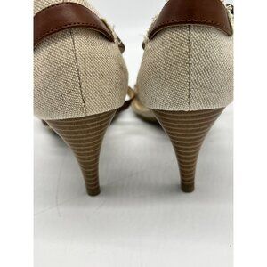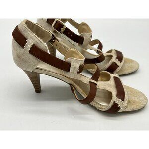 Dana Buchman Womens Strappy Heeled Sandals Size 8M Beige Canvas Buckle Open Toe