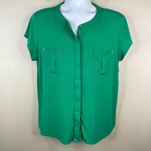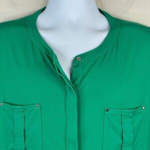 Dana Buchman Womens Travel Knit Tunic Top Size XL Green Button Up Comfy Office
