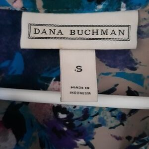 Dana Buchman button down floral print size small has strap in the sleeves to make them shorter 100% polyester