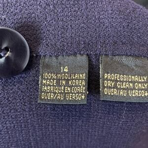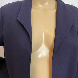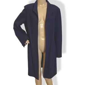 Dana Buchman jacket 14 navy blue wool open front knee length