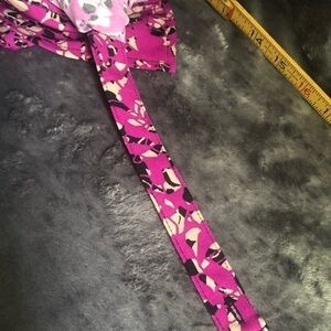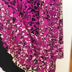 Dana Buchman long or 3/4 sleeve shirt Black purple and tan floral design button down soft and silky. In excellent condition size XL