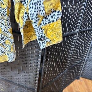 Dana Buchman retro silk blouse gold chain link over black and white print size 4