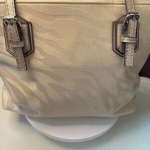 Dana Buchman shoulder bag two tone canvas/ Cream metallic trim silvertone HW