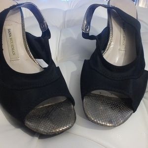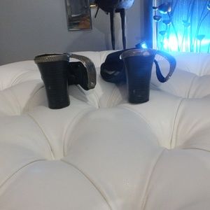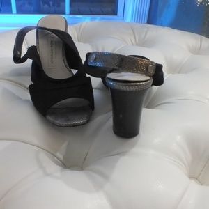 black and silver sexy sling backs...minor wear as shown in heels but not noticeable on