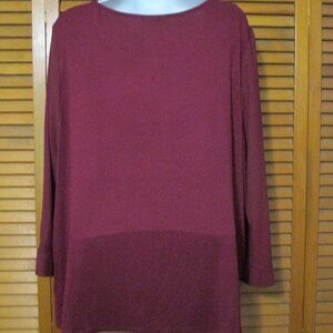 Dana Buchman top cranberry color 3/4 sleeves tiered front pullover blouse sz XL