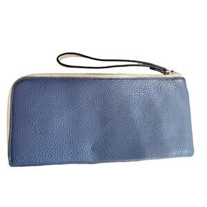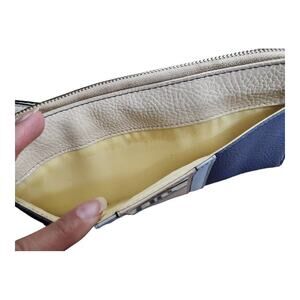Does have some spots around the zipper and inside. The interior looks like the glue came thru the material. Does have very small chips on the card slots. Most can be seen in the pictures.