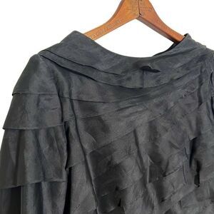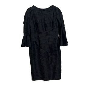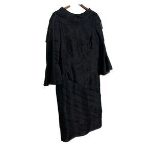 Dana Buchman NWOT Silk Bell Sleeve Tiered Layered Cocktail Dress Black Size 10