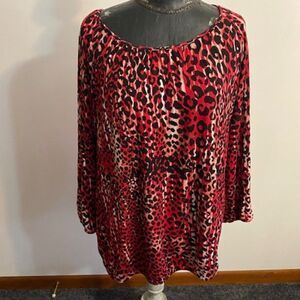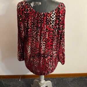 Dana Buchman Red Cheetah print blouse, size XLarge (95% Rayon, 5% Spandex)
