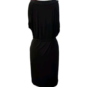 Dana Buckman black V-neck sleeveless midi dress with rope belt, size Small, EUC