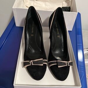 Black And Gray Tan Suede "Rory" Pump By Dana Davis. 3.5 Inch Heel With Invisible Comfort Technology. Suede Upper And Leather Sole. Made In Italy. Size 9-1/2 M.
