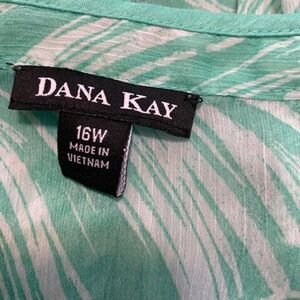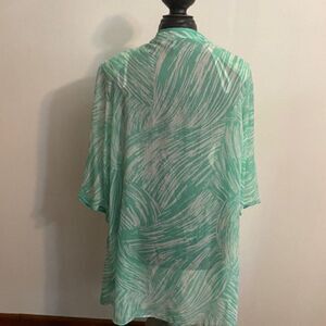 Dana Kay Green/White Palm Tree print sheer 3/4 sleeves kimono, size 16W