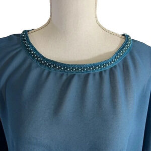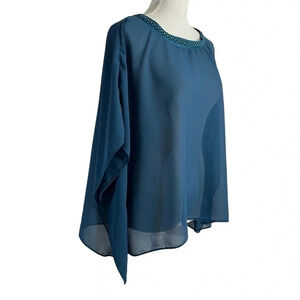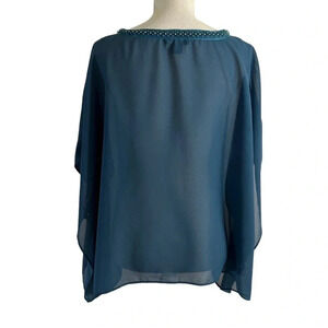 Dana Kay Womens Blouse Plus Size 16W Sheer Beaded Batwing Sleeves Detailed Top